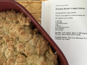 This may be my favorite of Grandma Barker’s recipes. It is tender, delicate and when made with a tart apple like a Granny Smith or Haralson, it is a perfect combination. It begs for cinnamon ice cream on top.